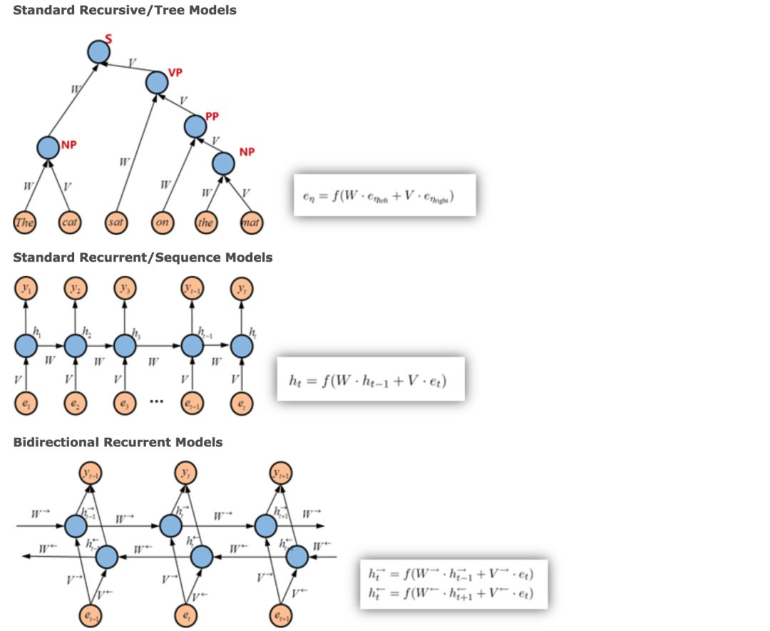 - Standard tree models (standard Recursive neural models), standard sequence models (standard Recurrent neural models), standard bi-directional sequence models (bi-directional recurrent neural models).