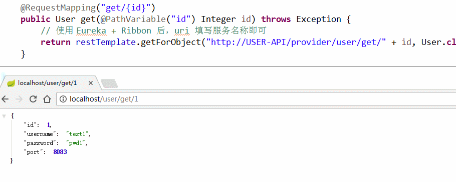 - return restTemplate.getForObject("http://USER-API/provider/user/get/" + id, User.class);