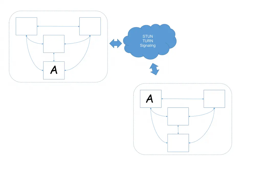 去中心化的webrtc应用架构示意图