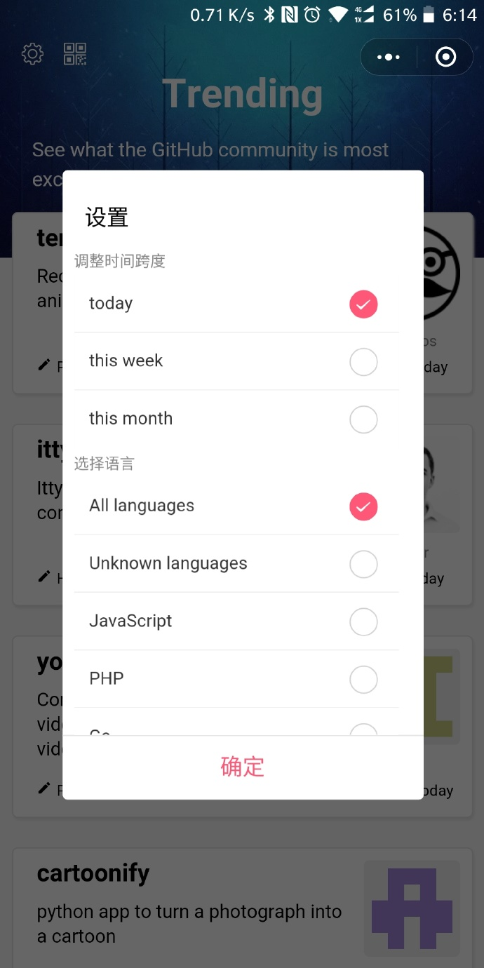 最近做了一个很简单的微信小程序:GitHub Trending,很适合用于在做地铁、吃饭等零碎时间场景下去了解最新的 GitHub 热门项目,发现好项目。