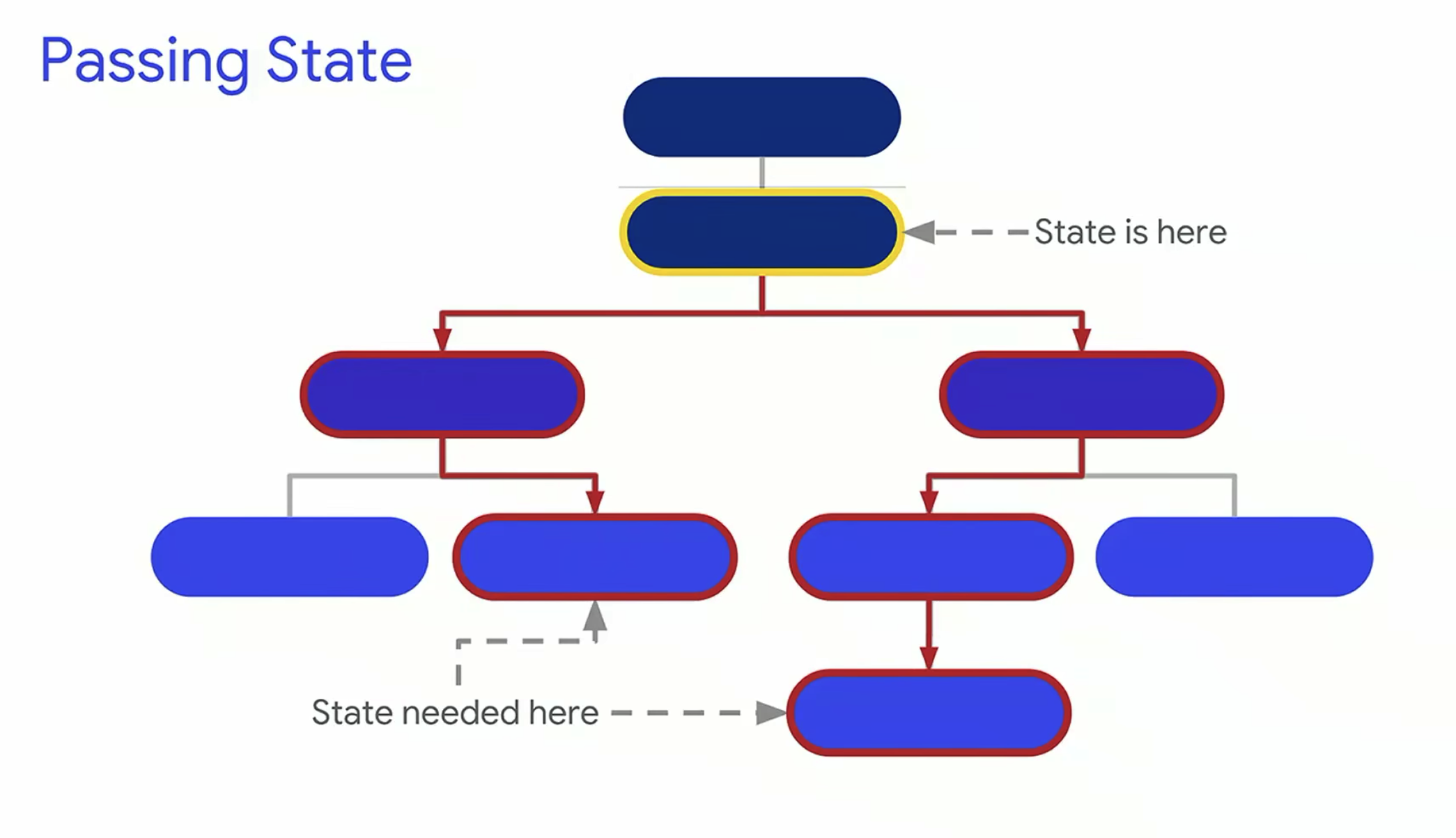 虽然这种传递是可以使用的, 但是有一个问题,当我们构建大型应用的时候,整个view tree都需要传递状态,这显然是不合理的。
