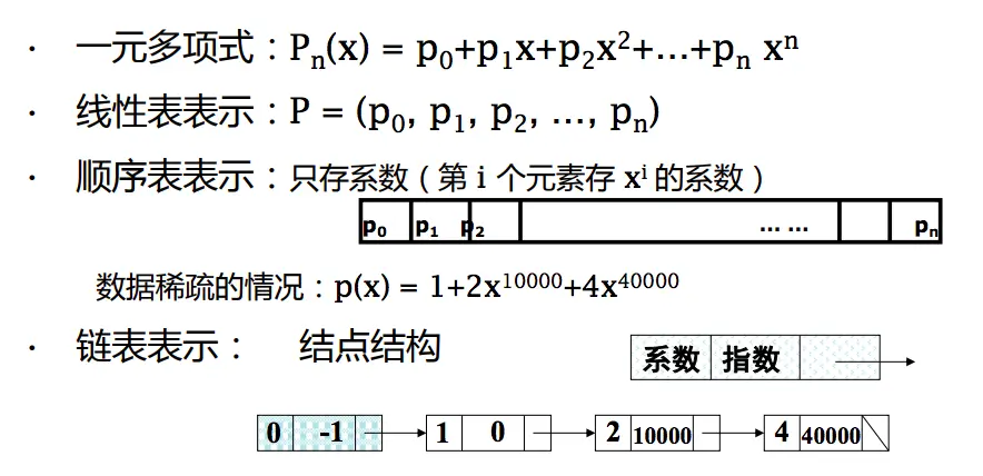 可以思考下一元多项式的实现,对于系数稠密情况采用顺序表比较好,而对于稀疏琴况明显采用链表好