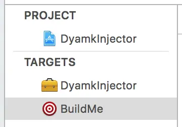 注入器主要由两个Target构成,一个是Xcode动态库工程DyamkInjector