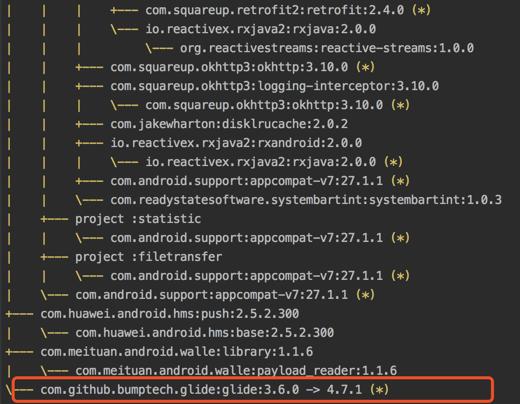 一个APK项目中,引入了ImageLoader和Album两个第三方库,这两个库引用的Glide版本不一致, 在最后打包的过程中,低版本会被忽略。