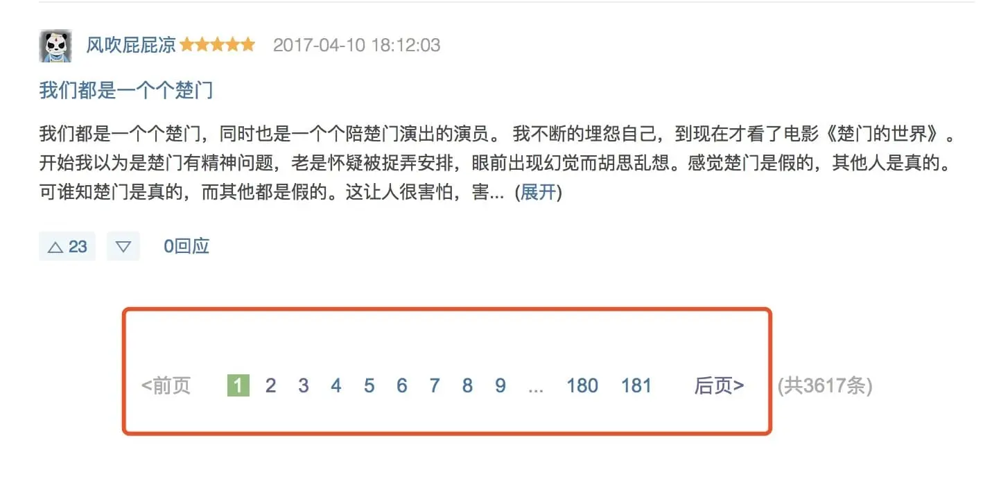 1. 当某个电影的评论不足20条时,也就是只有一页评论。