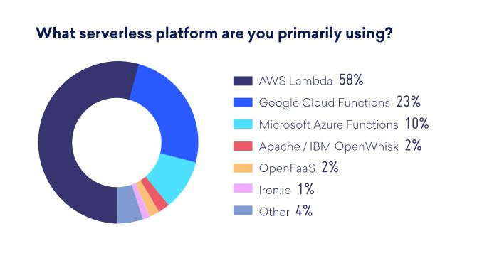开始应用Serverless技术的企业,58%的使用者导入了AWS Lambda作为Serverless应用执行平台,殿后的是Google CloudFunctions(23%),而微软Azure Functions则以10%拿下第三名。