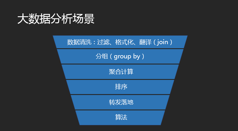 先对常见的大数据分析场景进行分类归纳,一般就是以下几种: