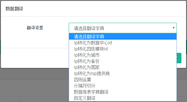 • 翻译:1、内外部IP信息翻译;2、数据库表字典翻译;3、分隔符切分;4、四则运算;5、UDF翻译。