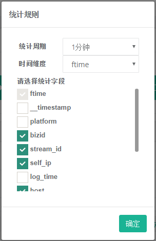 • 分组:配置统计周期、时间字段和分组字段。
