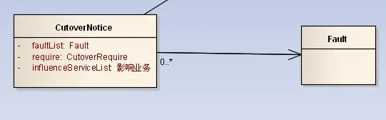 多重性(Multiplicity) : 通常在关联、聚合、组合中使用。就是代表有多少个关联对象存在。使用数字..星号(数字)表示。如下图,一个割接通知可以关联0个到N个故障单。