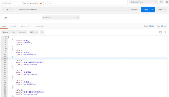 GET请求:http://localhost:3000/list