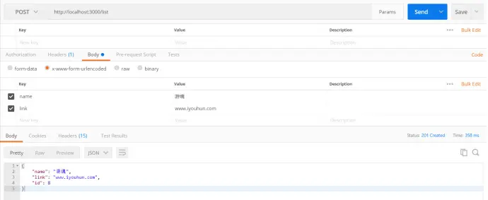 POST请求:http://localhost:3000/list