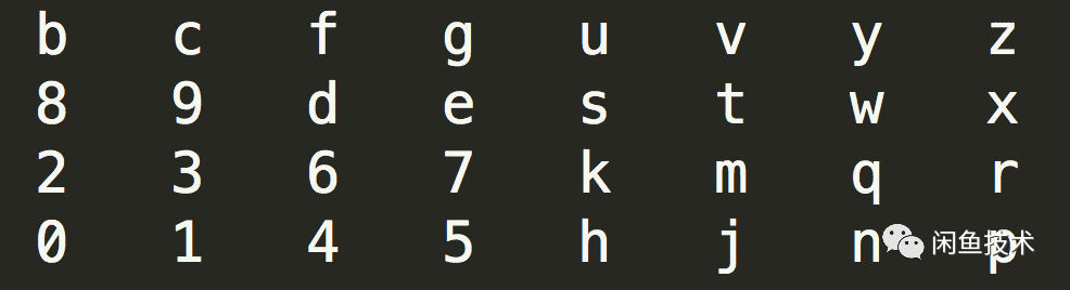 经 纬 经 纬”。 'w'的二进制11100,转换成方位含义就是“右 上 右 下 左”。't'的二进制11001,转换成方位含义就是“上 右 下 左 上”。 根据这个字符与方位的转换关系,我们可以知道,奇数位上的字符与位置对照表如下: