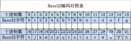 按照“偶数位放经度,奇数位放纬度”的规则,将经纬度的二进制编码穿插,得到完成的二进制编码为:11100 11001 10011 10010 00111 00010。由于后续要使用的是base32编码,每5个二进制数对应一个32进制数,所以这里将每5个二进制位转换成十进制位,得到28,25,19,18,7,2。 对照base32编码表,得到对应的编码为:wtmk72。