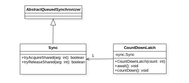 从CountDownLatch的名字可以猜测内部应该有个计数器,并且这个计数器是递减的,下面就通过源码看看JDK开发组是何时初始化计数器,何时递减的,计数器变为 0 的时候做了什么操作,多个线程是如何通过计时器值实现同步的,首先我们先看看CountDownLatch内部结构,类图如下: