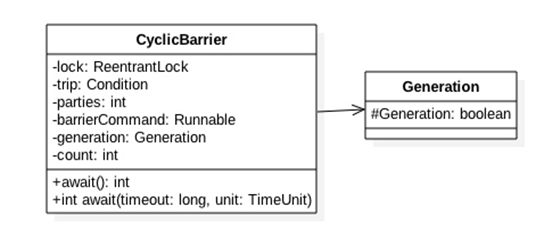 为了能一览CyclicBarrier的架构设计,下面先看下CyclicBarrier的类图,如下图: