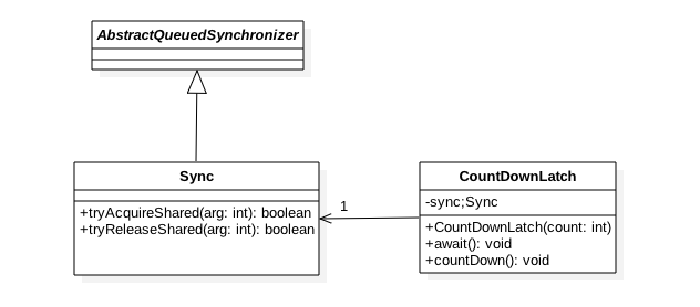 从类图可以知道CountDownLatch内部还是使用AQS实现的,通过下面构造函数初始化计数器的值,可知实际上是把计数器的值赋值给了AQS的state,也就是这里AQS的状态值来表示计数器值。