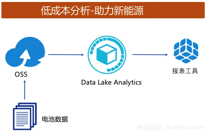 客户有大量电池数据,需要天级别仅分析一次蓄电池的数据,来分析电池的使用寿命,以决定是否提前做报废。客户通过将电池数据批量上传至OSS,通过Data Lake Analytics每日分析一次,OSS 10TB月均存储成本约1200元,Data Lake Analytics则按照查询数据量计费(目前公测期间不收费),成本极具优势。