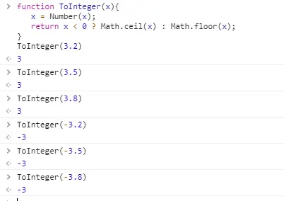 下面代码中,不管正数或负数,ToInteger函数总是返回一个数值的整数部分。