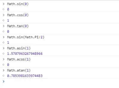 Math.asin() 返回参数的反正弦(返回值为弧度值)