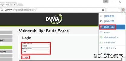 浏览器启用SwitchyOmega的Burp Suite模式,启动Burp Suite监听本地的8080端口。在页面中任意输入一个用户名和密码,如图3-20所示。