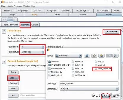 第2个目标参数是password,将创建的weak_top25.txt文件作为密码字典就可以了,如图3-28所示。