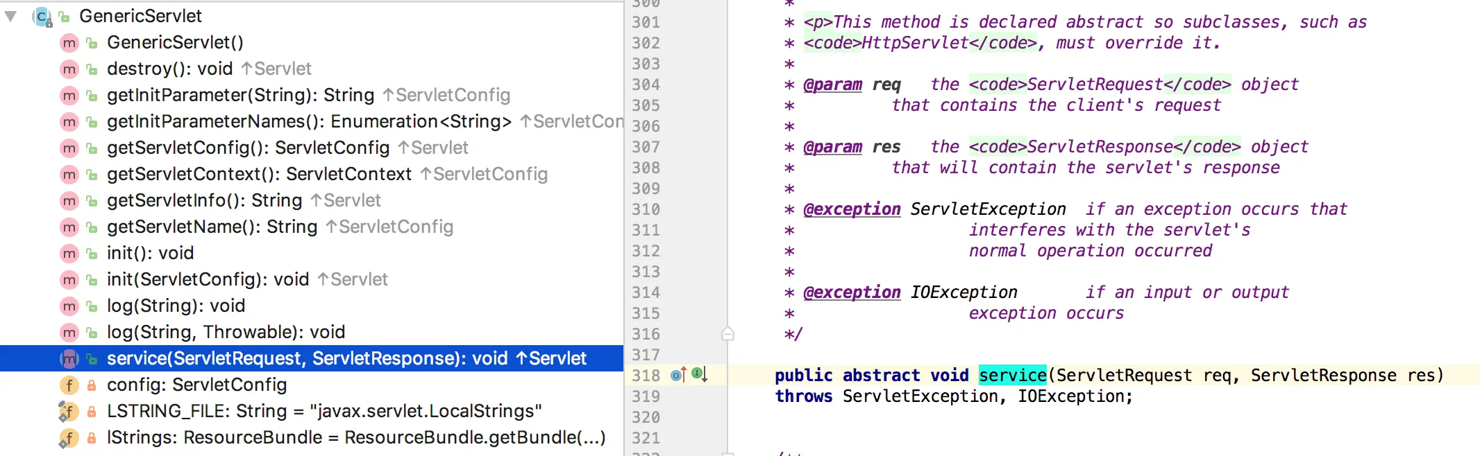 GenericServlet是一个抽象类,只实现了部分方法, 没有实现service方法
