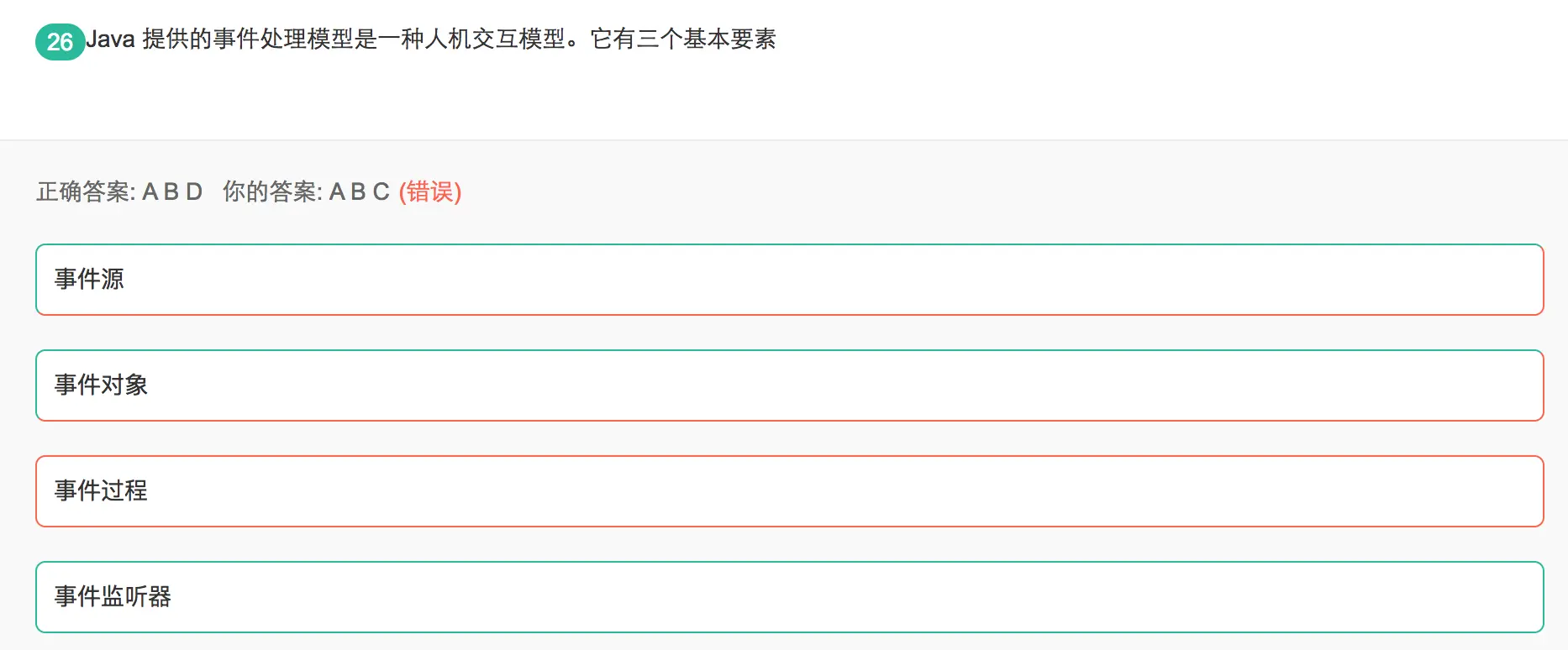 事件源:事件发生的场所,指各个组件,如按钮等,点击按钮就是组件上发生的一个事件