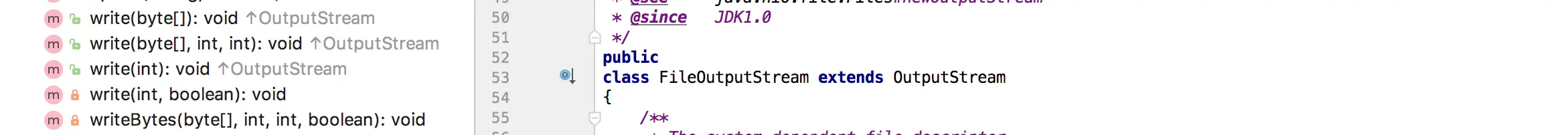 如果是FileOutputStream,就是相对于自己输出(output),也就是向File中写入数据