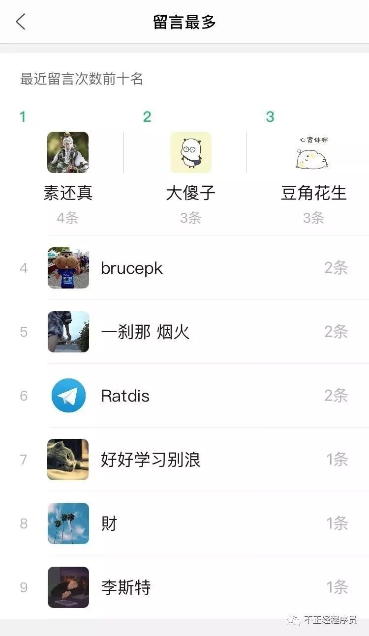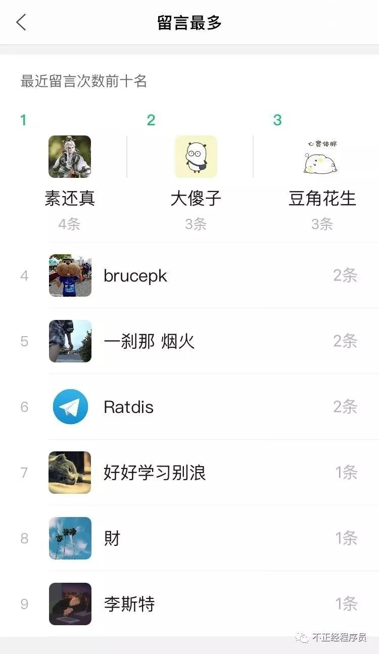 不过经排查,其中一个不是关注我们公众号的小伙伴,所以就剩下了一本《Python3 网络爬虫开发实战》,那就送给公众号文章最近留言的第一名吧,这名读者的昵称是「素还真」: