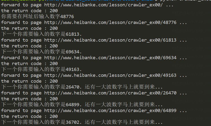 不过,我们可以大致总结出本关的规律:第一关是将页面出现的数字填写到当前 URL 的尾部进行访问,然后会得到一个新的数字,再用它替换 URL 中的尾部数字,这样不断循环往复,直到页面出现成功标识。