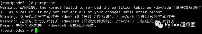 第四步:要想让分区有效,可以重启,或者执行下面命令