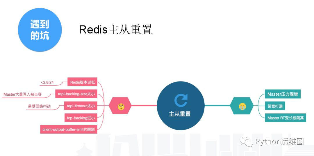 以上都是导致主从重置的原因,主从重置的后果很严重。Master压力爆增无法提供服务,业务就把这个节点定为不可用。响应时间变长 Master所在所有主机的节点都会受到影响。