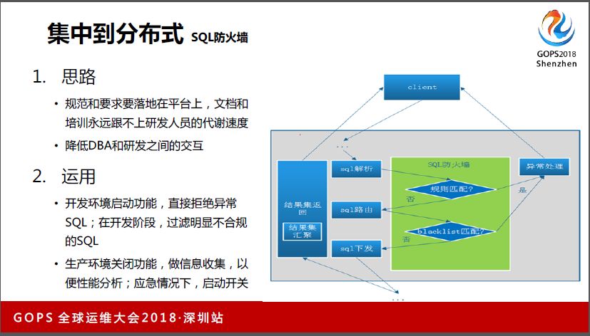 第一:我们做了SQL防火墙。主要解决DBA和研发反复沟通SQL质量的问题,我们把SQL审核规则逐步做到防火墙里面去。