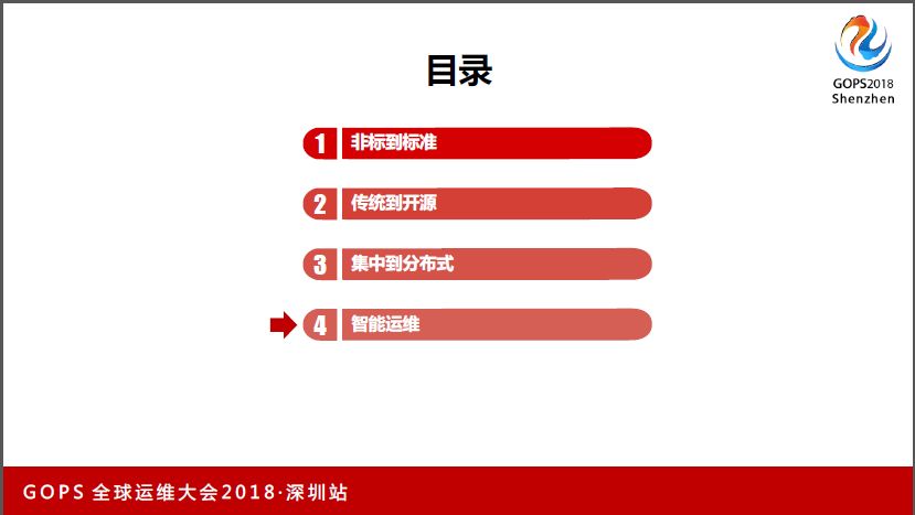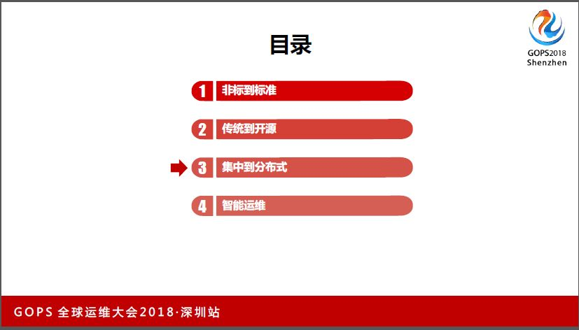 我今天讲的内容是:非标到的标准,传统到开源,集中到分布式,智能运维。其中会着重讲一下集中到分布式,以及智能运维的内容。