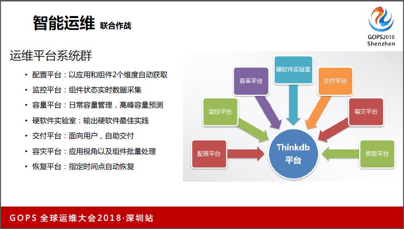 我们目前内部做的一个自动化管理平台就是叫Thinkdb,基础架构内部有一系列的基础功能性平台来做底层支撑。