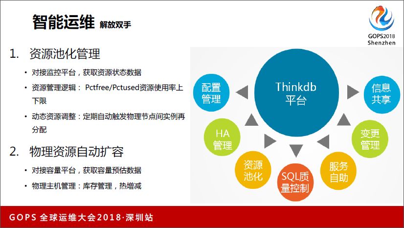 再谈下资源池管理,我们设计了一个资源池管理的逻辑,通过Pctfree/Pctused来控制资源使用率的上下限,超过上限,定期触发实例自动搭建在低于下限的节点上,并自动切换和原节点下线。