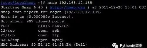 3306 端口,同时还侦测到了每个端口对应的服务,在最后还给出了目标主机网卡的 MAC
