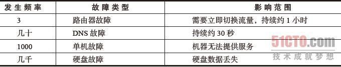 我们尝试以故障域对故障做一个简单的分类。所谓故障域,就是会因为一个故障而同时不可用的一组组件,常见的故障域包括: