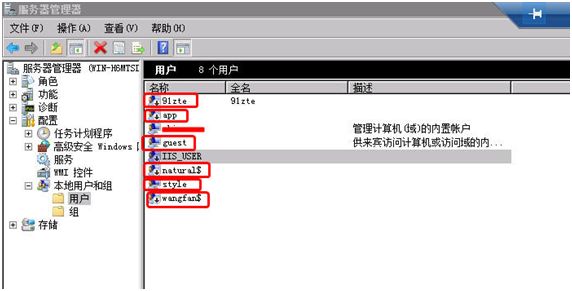 经过朋友的确认,红色框住用户全部为黑客添加账号,如图 12 所示,共计 7 个账号,将其删除。