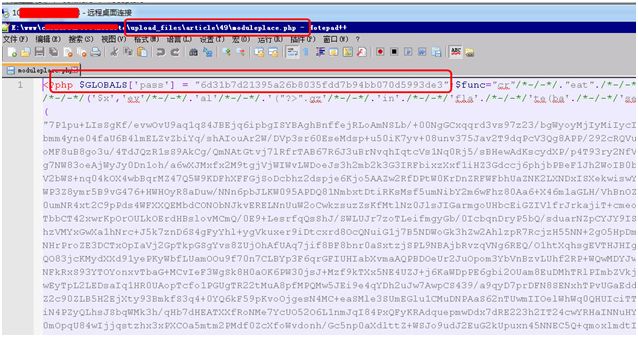 对网站的文件逐个进行查看,文件中有加密字符、乱码的,多半是 webshell。