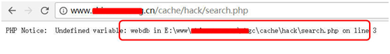 通过访问 cache/hack 目录下的 search.php 文件,成功获取网站的真实物理路径。