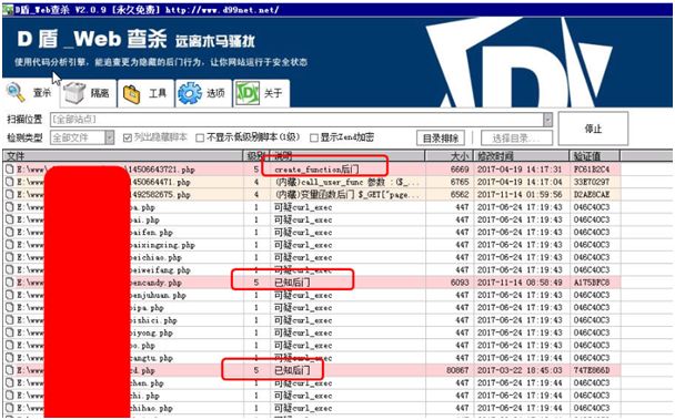 个人觉得 WebShellKill 这个工具不错,可以自动检测很多已知的后门文件和一些病毒文件,它的 最新版本是 2.0.9。