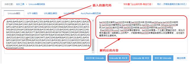 从首页中插入的代码来看是 Unicode 编码,将其复制到 Unicode 编码在线解码的网站(http://tool.chinaz.com/tools/unicode.aspx ),并选择 Unicode 转 ASCII。