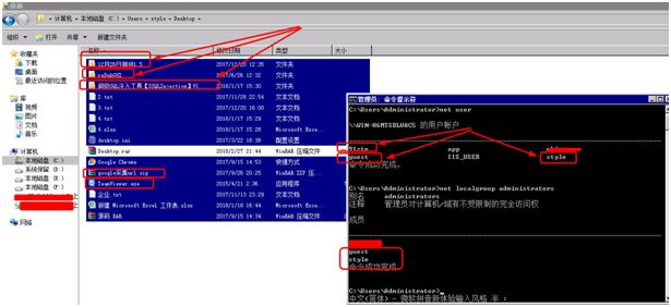 如图 13 所示,通过命令查看管理员及用户账号,并查看当前用户的配置文件,在其配置文件中包含一些黑客攻击工具,将这些文件全部打包压缩,然后删除用户及其配置文件。