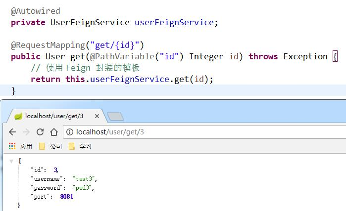使用 @FeignClient 注解指定调用的微服务名称,封装了调用 USER-API 的过程,作为消费方调用模板。