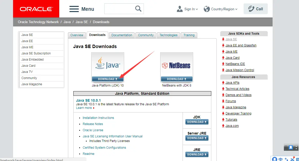 然后在网上搜到需要安装java的jdk 网址http://www.oracle.com/technetwork/java/javase/downloads/index.html