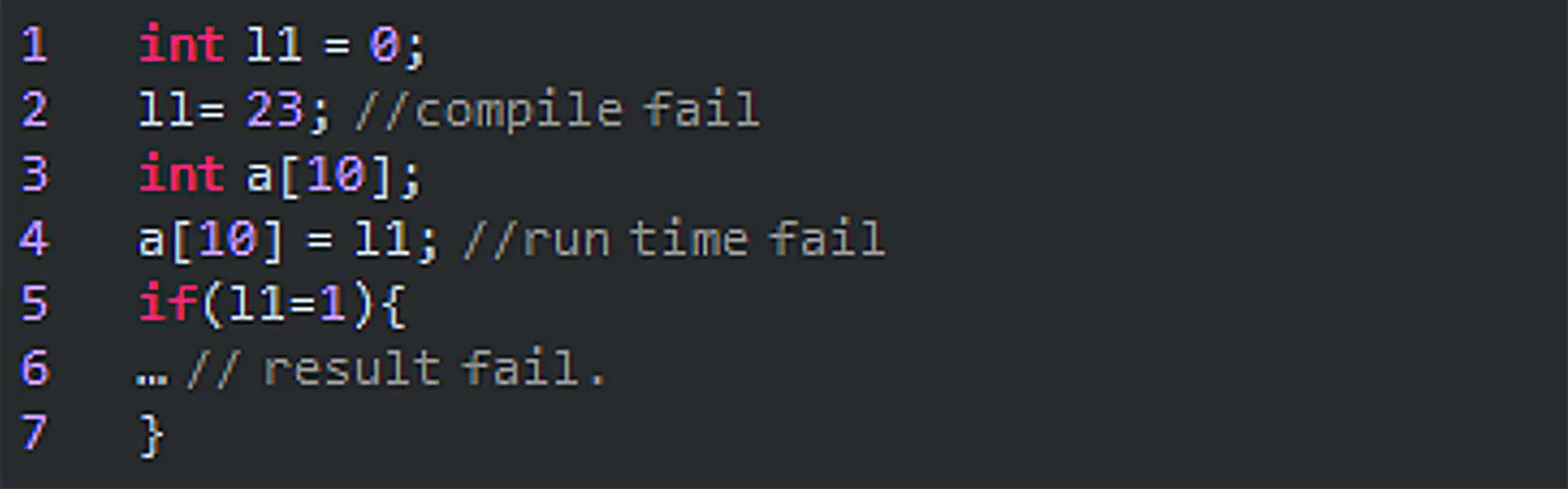 先说失败(failure)。常见的软件的失败主要分为三种,编译失败,运行失败,结果失败。下面通过一个程序的例子来说明: