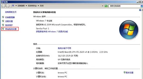 6、之后弹出下图的系统界面,然后选择左侧栏目中的“高级系统设置”。