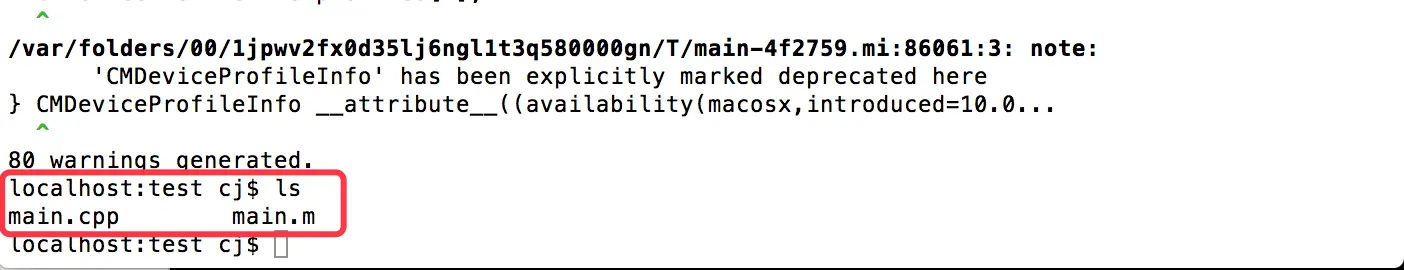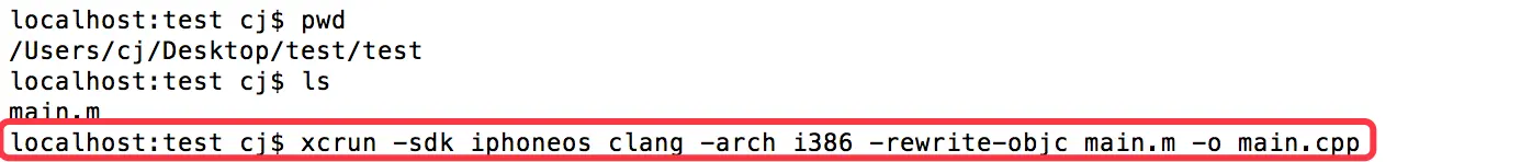在终端进入将被转换成C/C++文件的.m文件所在的目录,执行命令(图一):